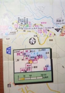 看地圖,首要知方向。地圖上一般有一個箭頭寫著英文字母「N」,就是指向北方(North)的方向。雖然傳統上地圖印刷預設上方為北方,有時候為了遷就印刷版面安排,會轉動地圖方向,所以這個北方箭頭可以指向上下左右任何一方。如果你有指南針(或相應的手機App),可轉動地圖令其北方與指南針的紅針(指北)方向一致,把地圖「正置」,這時地圖的上方就是我們面向的方向。